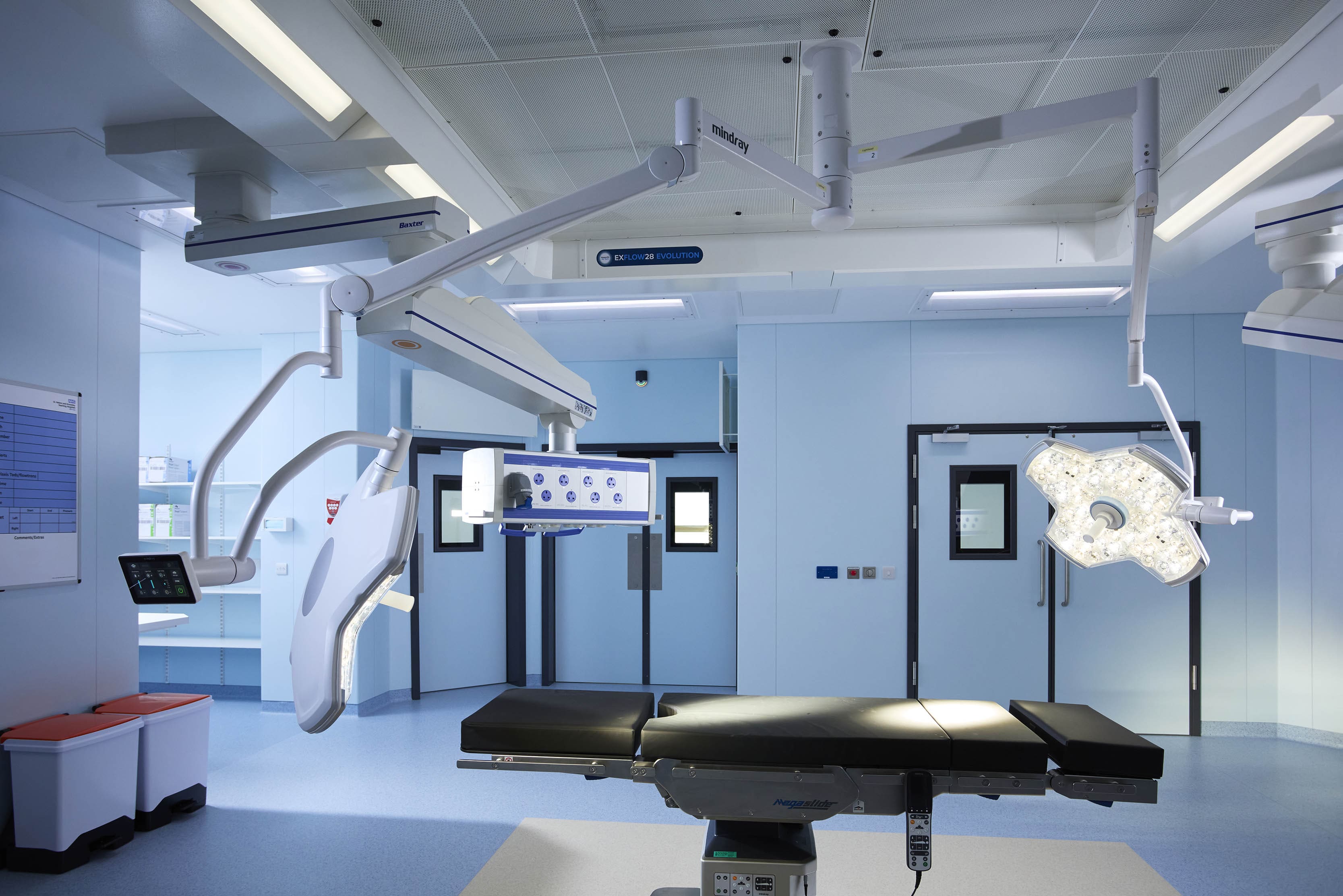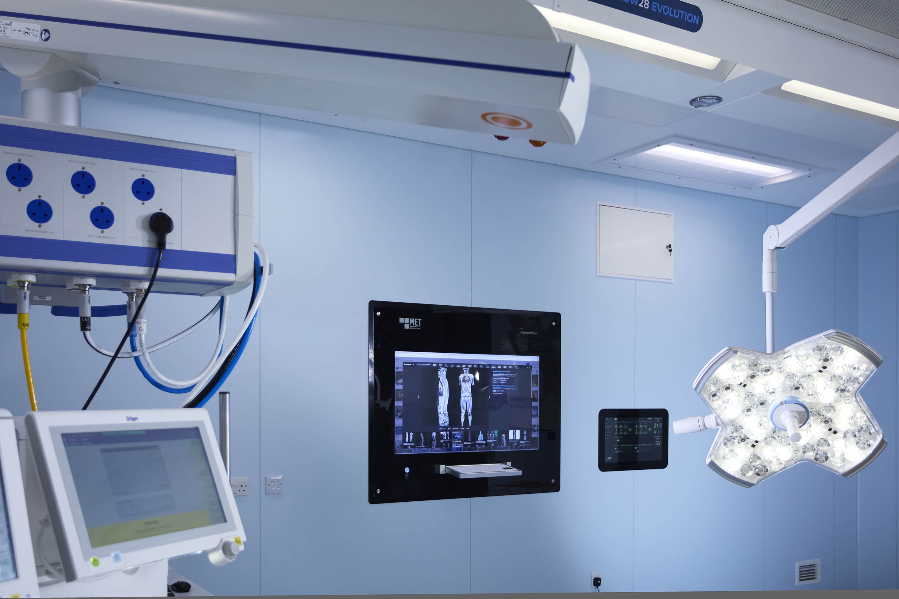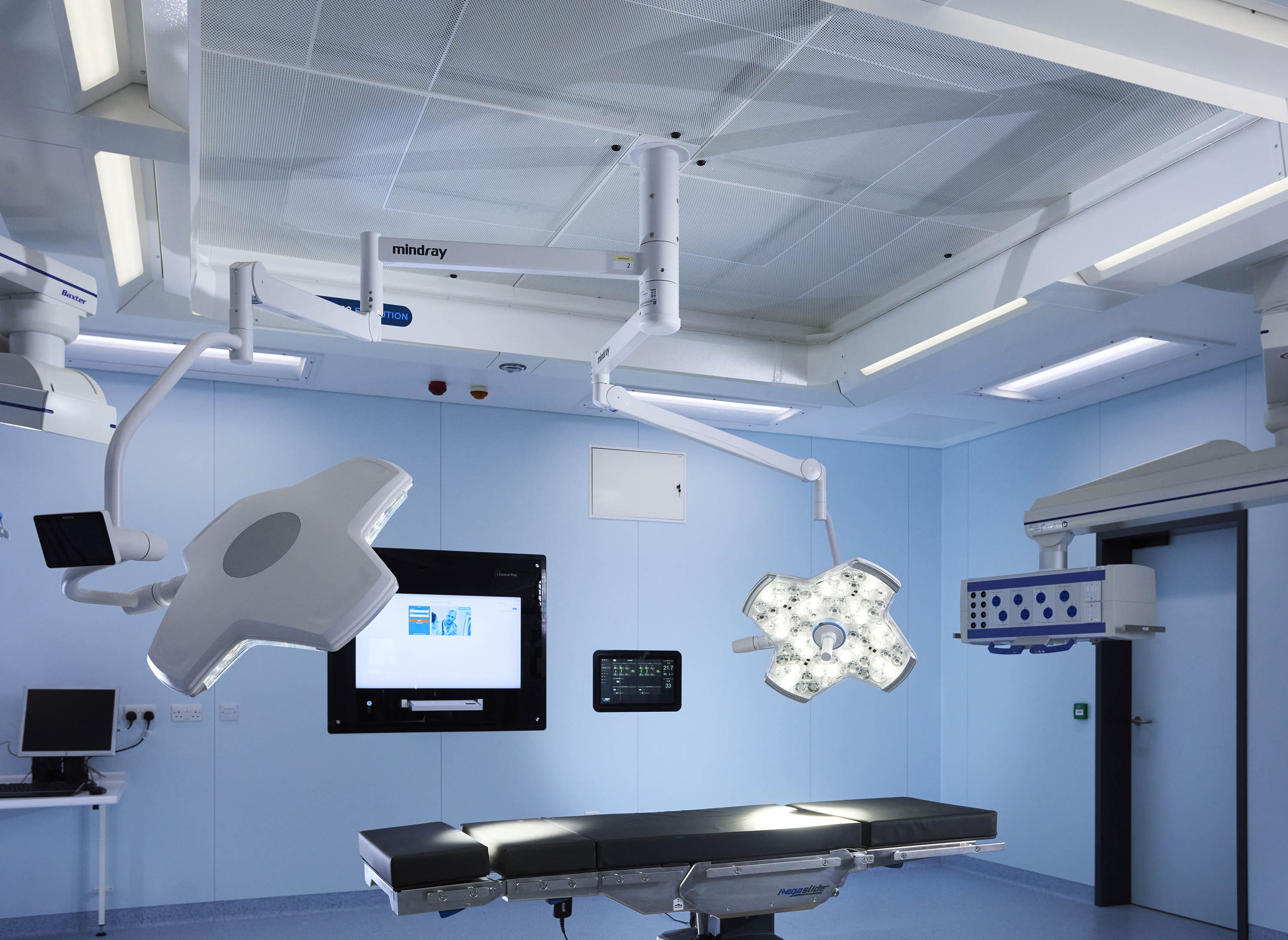 - Installation of specialist theatre equipment including pendants, surgical lighting, Theatre Control Panels (TCPs), PACS panels, and laser lock-down systems