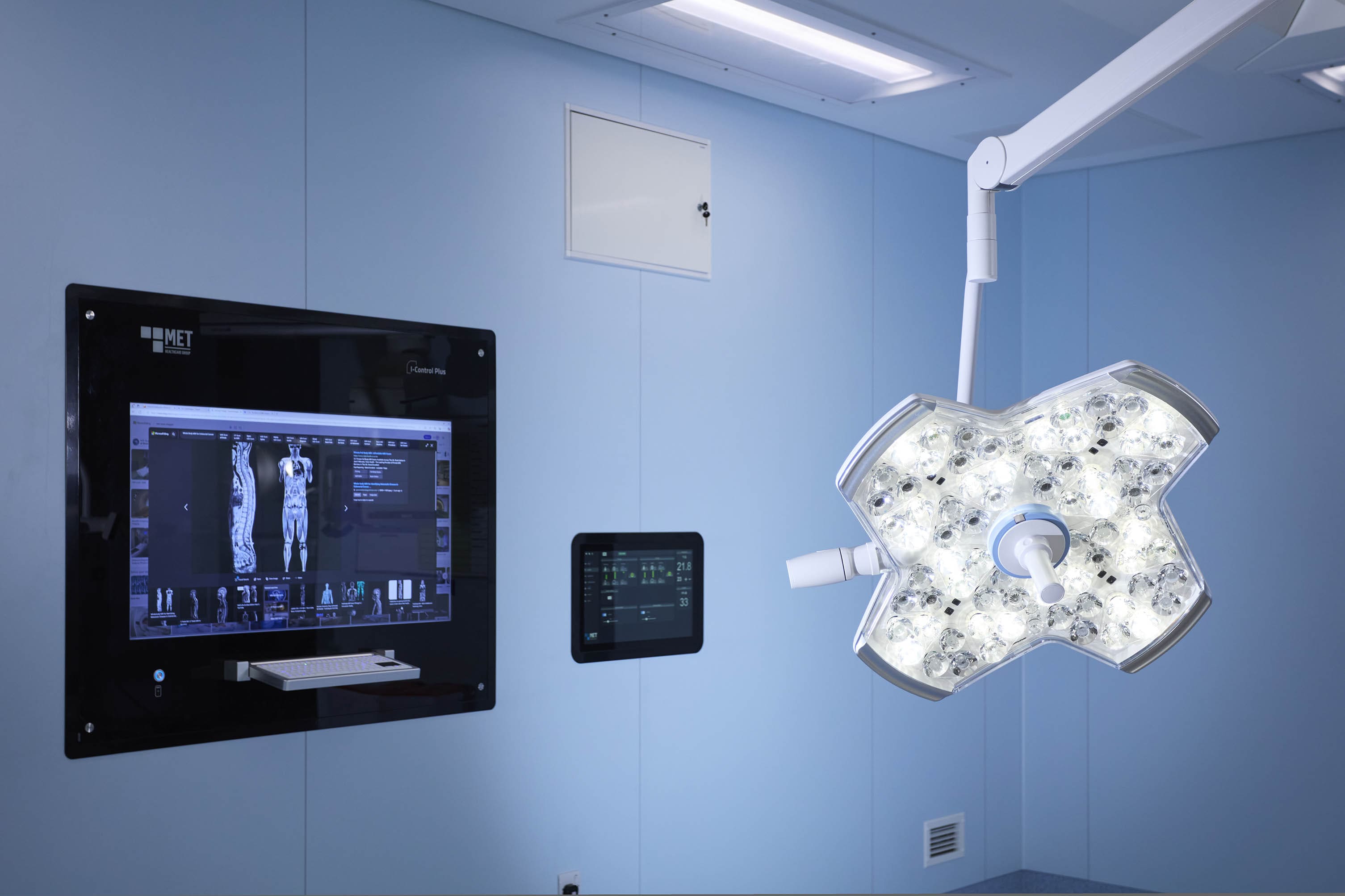 - Application of MET Healthcare’s High-Pressure Laminate (HPL) walling and ceiling systems, providing hygienic, seamless, and durable clinical finishes